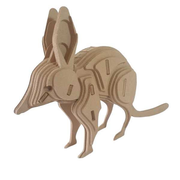 Say g’day to the Bilby 3D Model Kit—a medium-sized marsupial build designed for hobbyists aged 8 and up. With its long ears and easy assembly, this desert-dwelling digger offers a fun and accessible building experience for younger builders, wildlife fans, and creative minds alike. Once assembled, the model stands confidently on its own and can be rebuilt or glued together for a permanent display. The MDF surface is ideal for painting, allowing you to customise your bilby with natural tones, bright colours, or imaginative patterns.